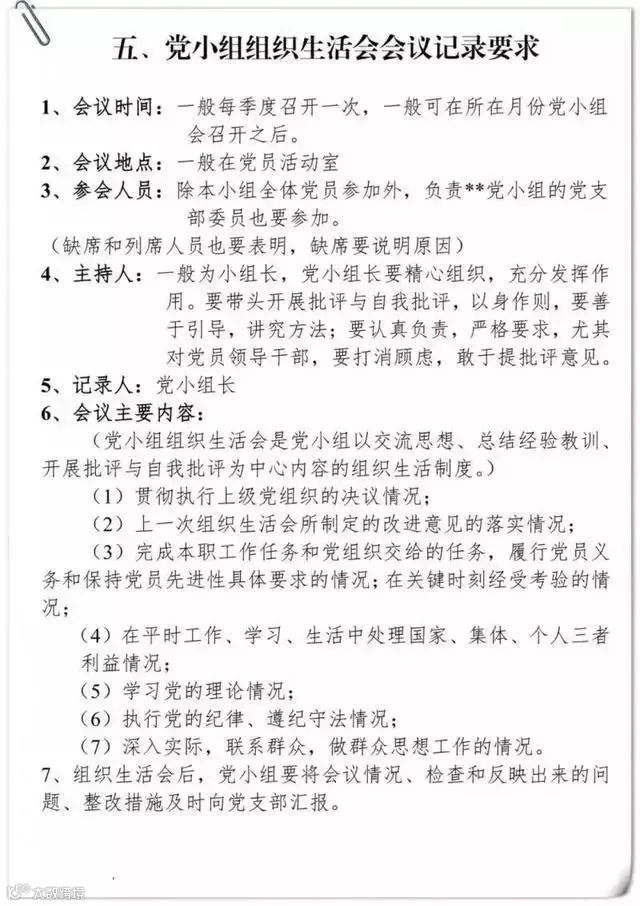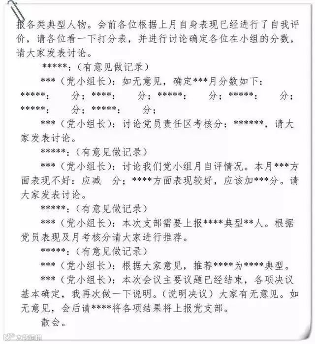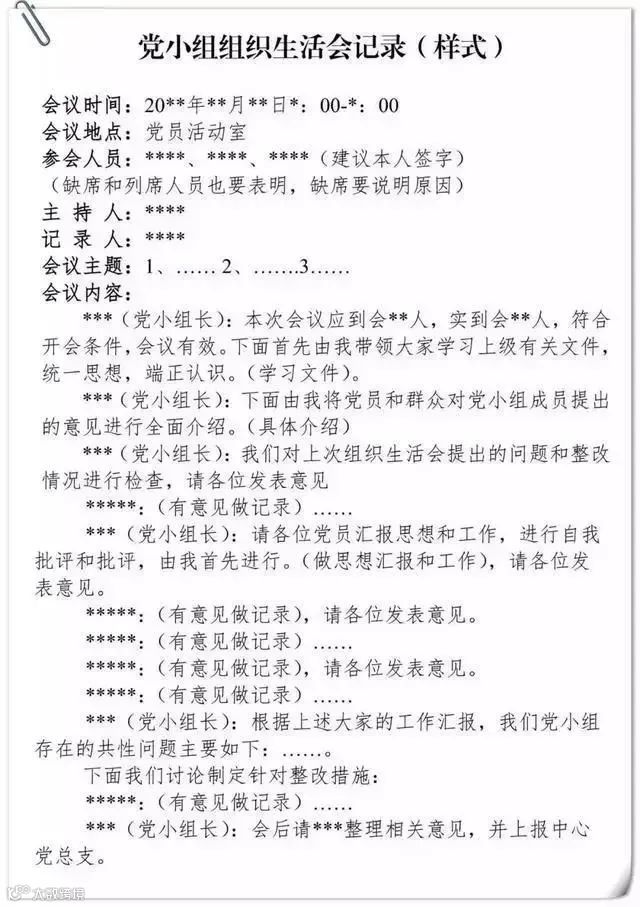 党小组组织生活会会议记录要求及样式