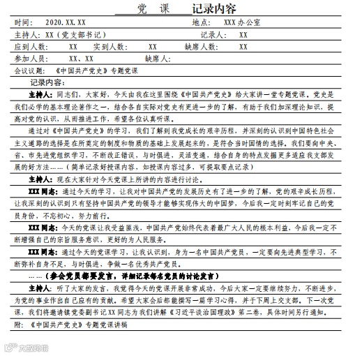党课会议记录要求及样式