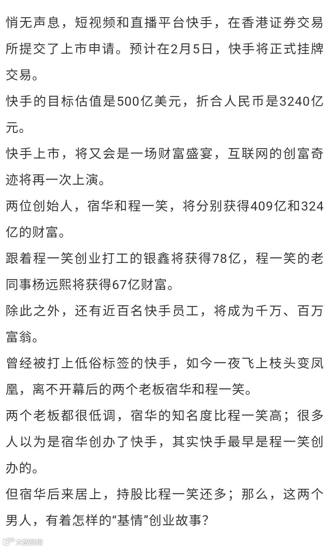 快手在香港上市,计划募集54亿港币,估值将达到500亿美元。