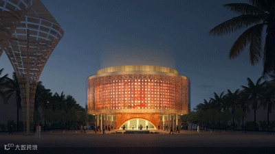 此外,中国馆外部使用科技环保的建筑材料,以现代技术手法表现出传统的中国文化。通过创新的多媒体技术,中国馆在夜间打造的灯光秀将会是2020年迪拜世博会园区的一道亮丽风景线。