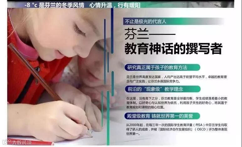 绚烂梦幻的芬兰不仅有令人沉醉惊奇的景色,更有享誉全球的教育:10多年来,芬兰的教育系统被看作欧洲乃至整个西方世界的榜样。