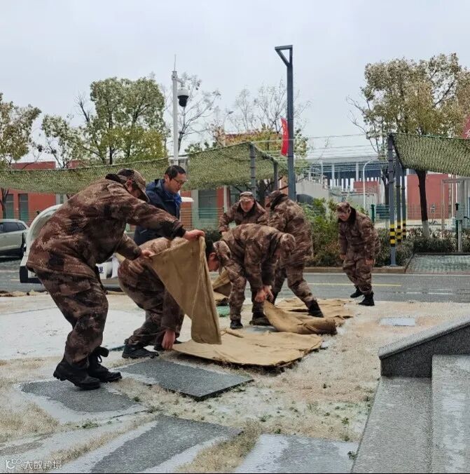 武汉水务环境公司、排水公司和武汉控股绿色产业分公司及所属各单位第一时间组织广大干部职工利用雪铲等工具对厂区道路开展扫雪除冰、清除倒伏树枝工作,并在污水处理设施、设备构筑物等重点部位铺设防滑垫、撒布融雪剂等。