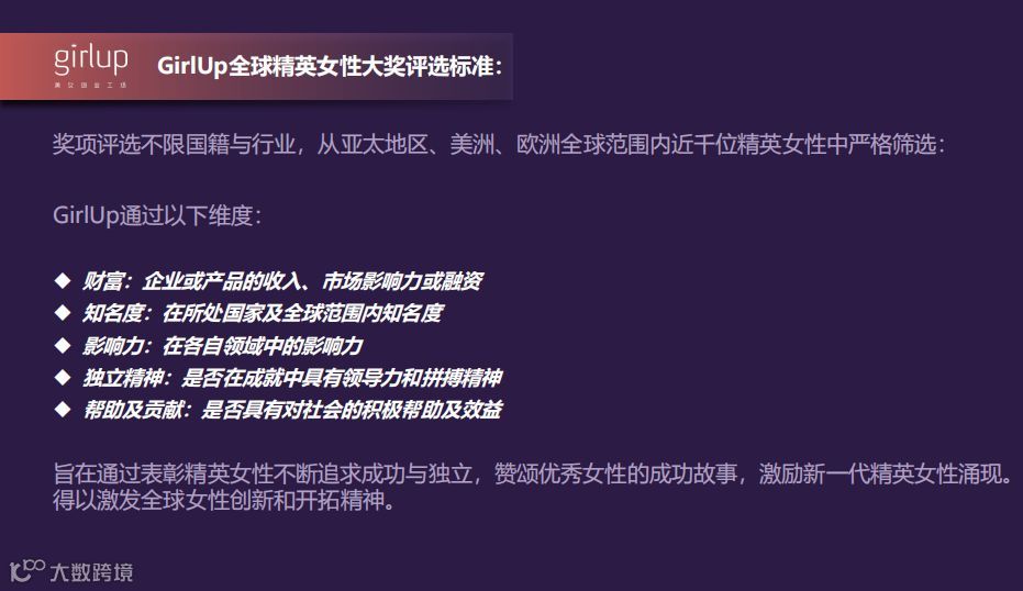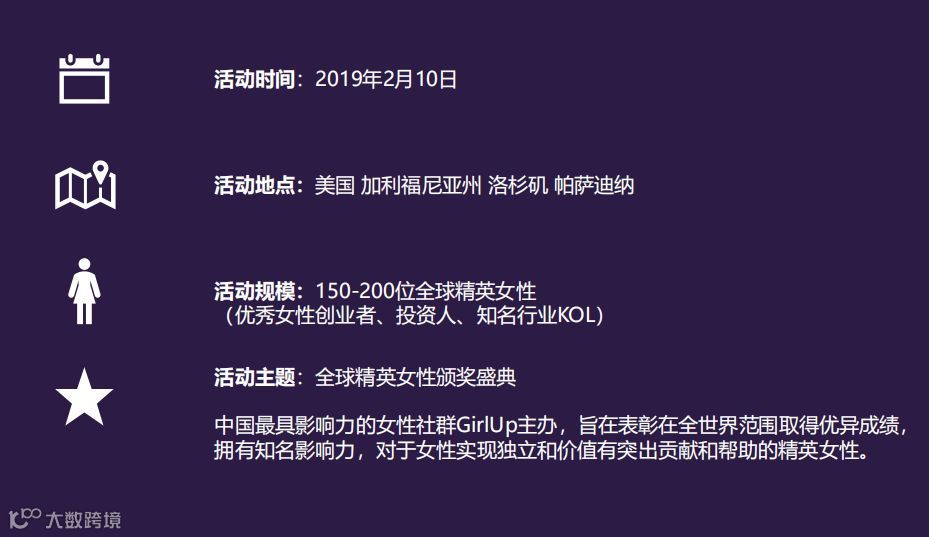 中国最具影响力的女性社群GirlUp主办,旨在表彰在全世界范围取得优异成绩,拥有知名影响力,对于女性实现独立和价值有突出贡献和帮助的精英女性。而这场盛典,不仅仅有颁奖,还会为到场的你,链接人脉,并且为你解决n多痛点。快来认真阅读吧!