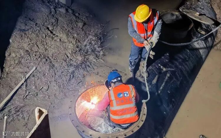 “关阀!”2月7日22点,随着现场指挥一声令下,所有点位的管道迁改施工几乎同步启动。在施工现场,随着阀门的关闭,余水逐渐排尽,施工人员迅速进入施工现场,开始了一场与时间赛跑的“战役”。