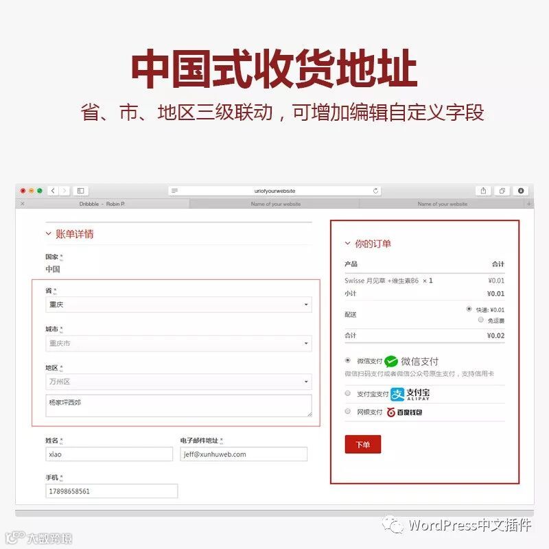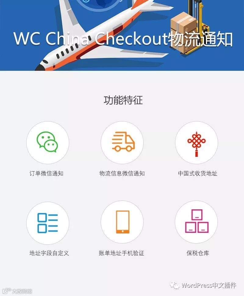 一款专门为中国人打造的WooCommerce结算和物流通知插件,包含中国式收货地址(省,市,城市三级联动),账单字段自定义,拖拽字段,订单和物流微信通知功能,支持全国绝大部分物流公司。界面简洁,性能优越,适配国人的使用习惯。
