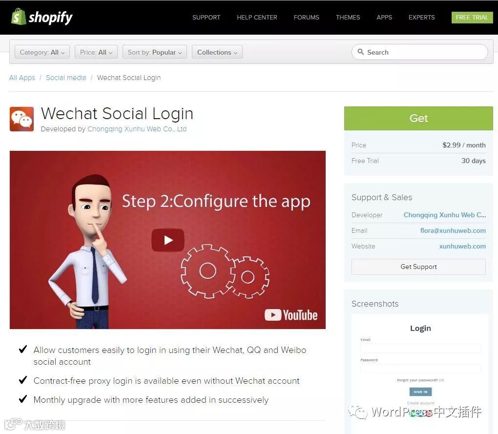 只要是使用Shopify的网站,安装Wechat social login for Shopify App即可快速连接8亿中国用户,免费1个月,正式收费也极为便宜。另外考虑到不好申请微信接口,我们还提供长期稳定的代理登录账户供用户使用。