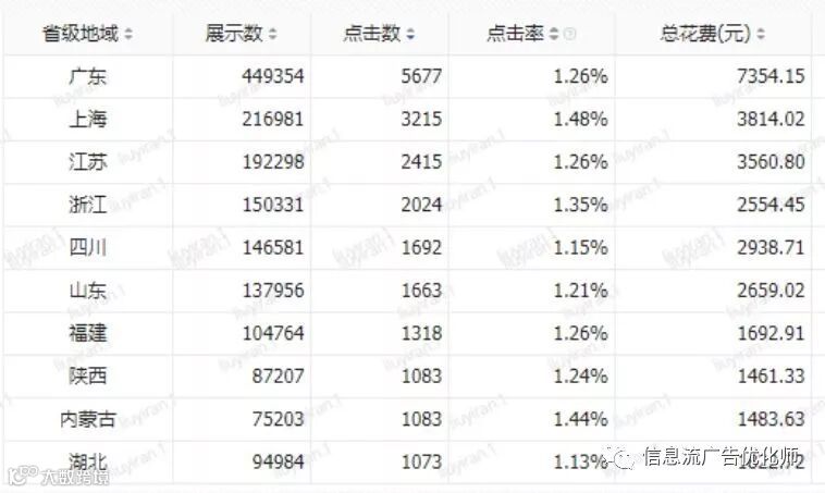2)根据效果数据优化:除必选定向外,全量投放,通过 “受众分析”报告,查看用户属性分布 分析数据报表,去除高转化地域、年龄段、兴趣分类,可有效降低转化成本。