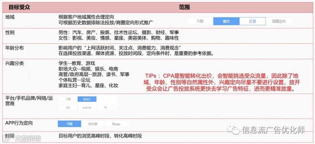 1)根据目标受众:结合产品的用户属性(如年龄、地域、性别、使用时间段等)设置,提升效果转化。