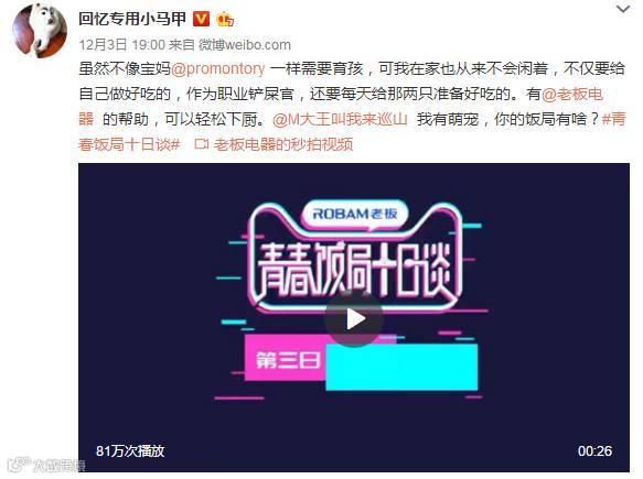 在微博微信KOL的推广助力下,老板电器#青春饭局十日谈#话题活动,微博热门话题达到1.4亿阅读,15万粉丝讨论,视频达到千万的播放量,为品牌产品带来上亿的曝光量,达到营销的目的。