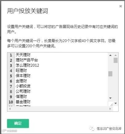 关键词放到最后说,是因为关键词定向在UC平台投放很举足轻重的作用。这个如果放在今日头条、广点通、扶翼可能不算什么,在这里可是大用处。根据以往经验,曾经跑金融股票、P2P、贷款,使用这招CPA直接下降一大半啊一大半。