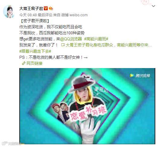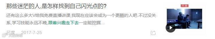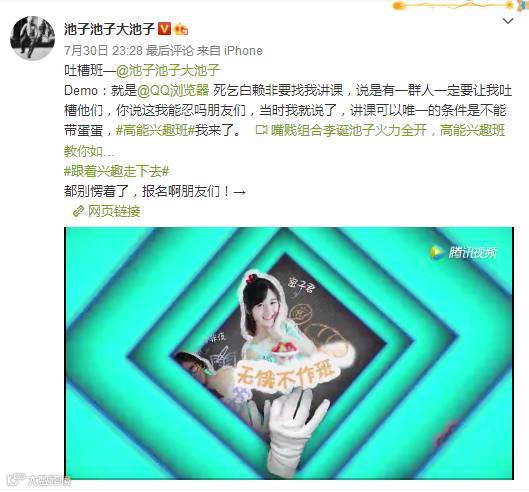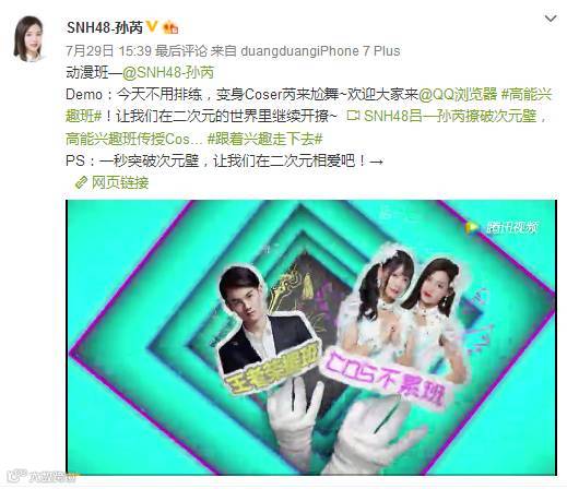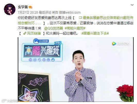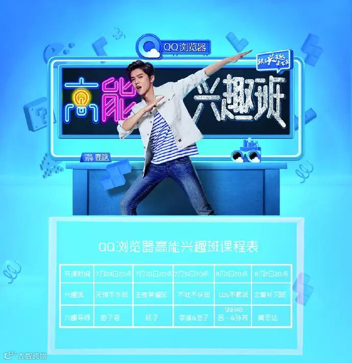 7月29日,QQ浏览器“高能兴趣班”开立,COS不累班、恋爱补习班、王者农药班等纷纷上线,邀请言情小天后叶非夜、王者荣耀解说瓶子、大美玲姜思达、SNH48成员等担任兴趣导师,通过视频、直播等方式,达人们与年轻人进行线上互动,表达主题“跟着兴趣走下去”,进行话题推广。
