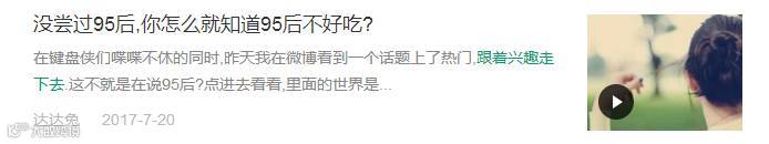 微信端,选取“清南师兄”、“达达兔”、“尺度”等账号,多角度剖析年轻人的“兴趣”观,表达年轻人的诉求,多篇10万+的阅读量,引起共鸣,达到宣传的效果。