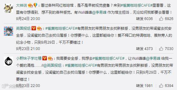 与此同时,为了此次快闪店的宣传,雀巢携手微博大V,开展热门话题推广以及进行视频广告的传播,@英国报姐、@娱八婆、@然后下面就没了 等娱乐搞笑类KOL拥有众多年轻粉丝团体,能够对活动宣传起到更好的效果,达到营销的目的。