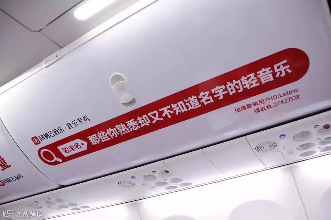 行李架和小桌板上打印着18个神级UGC歌单,这些歌单均是从网易云音乐的4亿歌单中筛选而来,平均播放量超过千万。