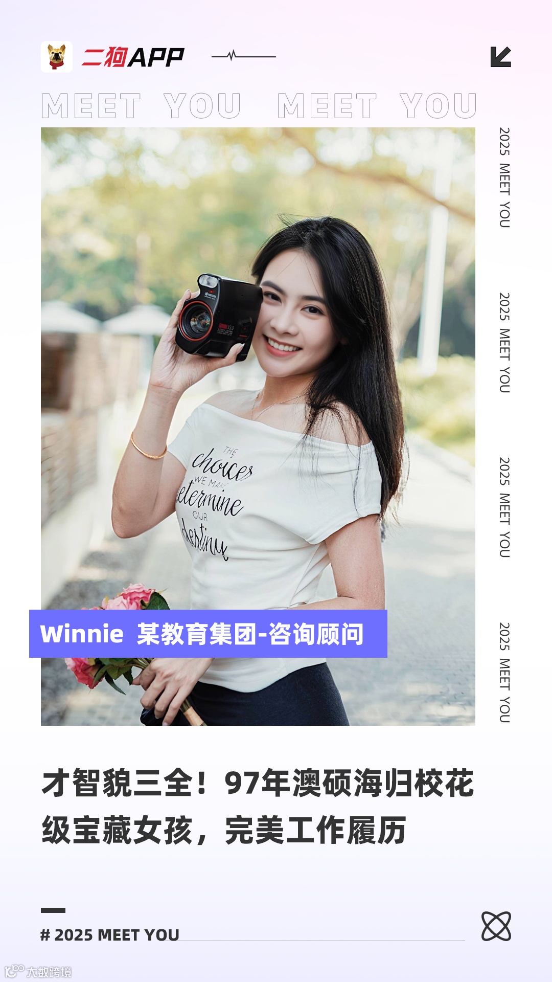 澳洲QS50硕士毕业,毕业后在澳洲银行和四大会计师事务所工作,前段时间刚结束海外生活回国,目前在国内教育大厂任职,一切都在稳步向前~