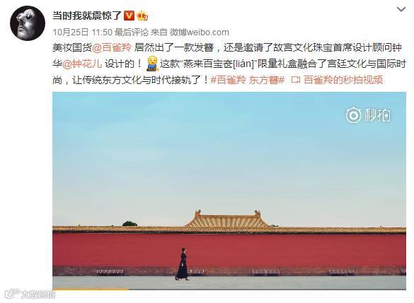 10月20日0点,百雀羚x钟华首批跨界限量版「燕来百宝奁」礼盒预售,在天猫旗舰店发布仅35秒就被期待已久的粉丝秒空。