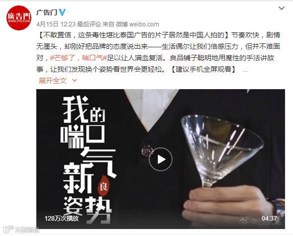 微博秒拍视频“我的喘口气新姿势”,播放128万次