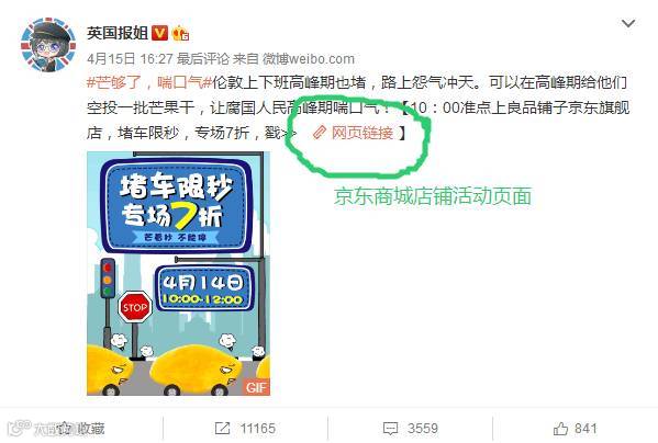 良品铺子继去年电商节成为京东休闲食品销量第一之后,微博图文活动页面链接京东商城,官方店铺直宣: