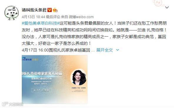 爱他美不但推出了白金版APTAOPO白金卓萃配方,带来了一场卓萃“白科技”风暴,还邀请了扎克伯格家族精英代表之一兰迪扎克伯格女士亲临分享扎氏育儿秘籍,探讨“有备而来式”育儿理念。(兰迪扎克伯格:扎克伯格家族精英代表,全美最具价值五大公司创始元老之一。)