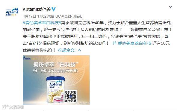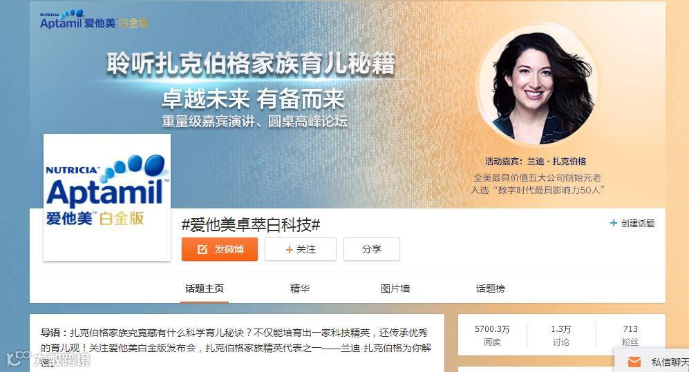 话题#爱他美卓萃白科技#阅读5700万,讨论1.3万,粉丝713
