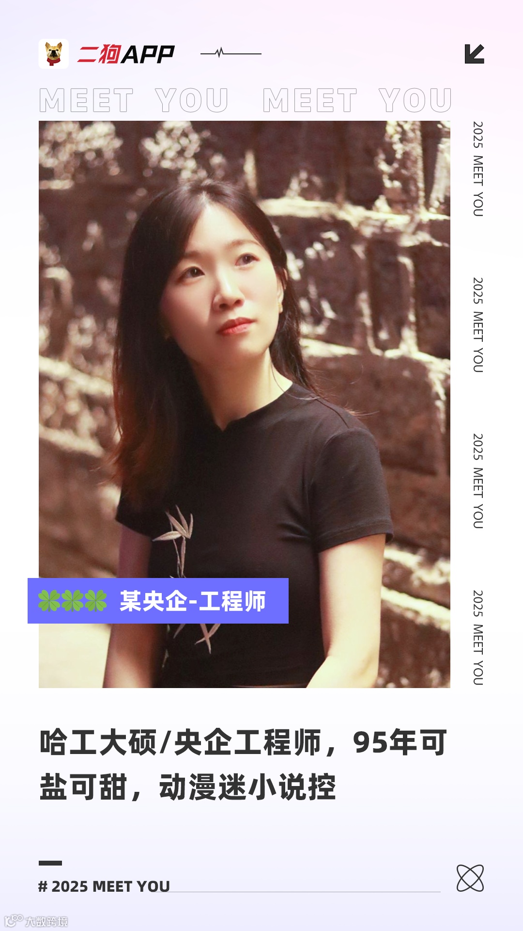 性格稳定,不接受抽烟的人,身高最好175cm以上,体重150斤以下,有点小颜控,喜欢眼睛大的,三观正常,性格乖乖,长相干净,有少年感,努力工作的同时也会享受生活的人,会主动发现生活中的美好。