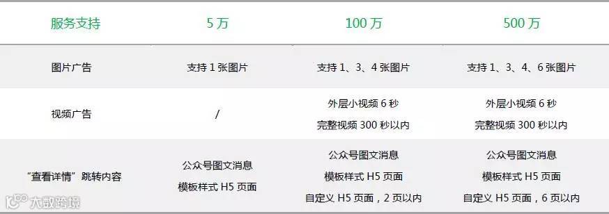 调整后不同投放门槛的服务标准如下表所示: