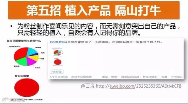 也就是为粉丝制作喜闻乐见的内容,而无须可以突出自己的产品,而找到一些比较巧妙的方法,把自己产品的一些功能、特点植入进去,自然就会使粉丝记住你。比如: