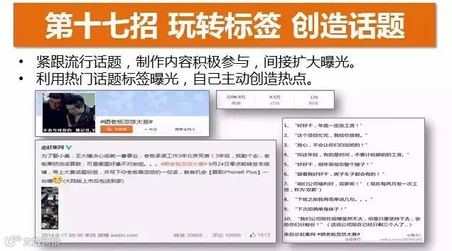 虽然微博的活跃度有所下降,但是除了微博,你也很难找到一个适合做事件营销的平台了,最重要的是,虽然是以微博为例,但是很多招数的玩法都是触类旁通的。