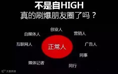 接下来,社会营销不是什么?不是自HIGH,这点是特别重要。我经常在朋友说,我做的什么内容已经刷爆朋友圈了。而刷爆你朋友圈的那些创业者、营销狗、产品汪等等往往都不是正常人。