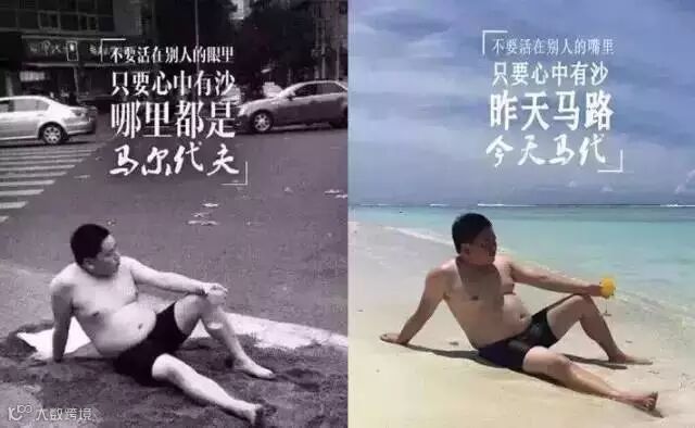 在今年夏天最热的时候,成都沙湾路十字路口,一名男子穿着大裤衩,坐在马路边的沙滩上,拿着一杯饮料,摆出一副在马尔代夫享受阳光的表情,瞬间在各大社交媒体火了起来。