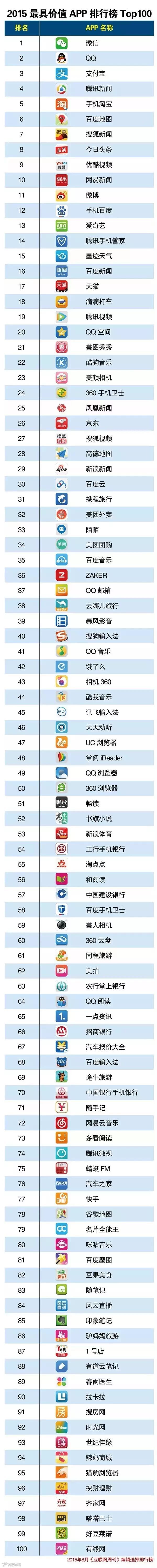 APP曾几乎在瞬间就改变了这个世界,以下是2015年最具价值的APP排行榜。