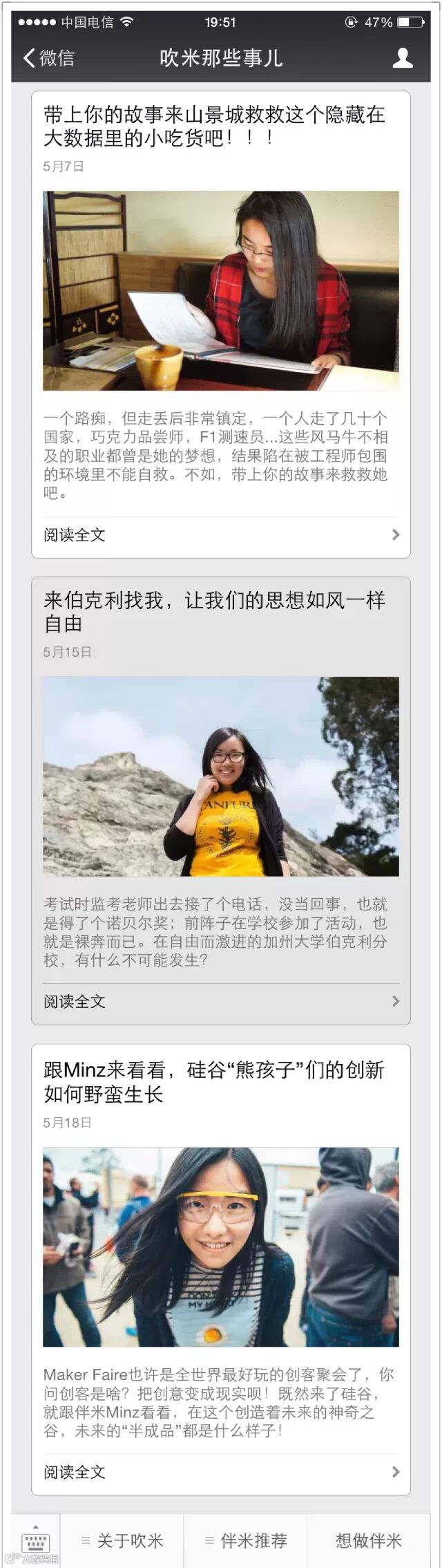 它统一利用漫画的形式,一篇文章一张图,给人感觉有些清新,有点雅痞…