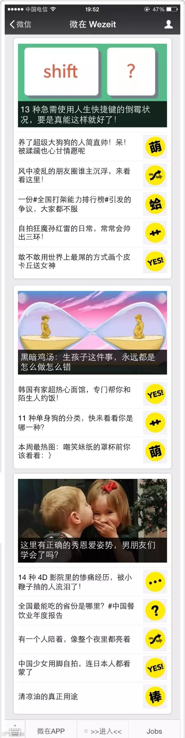 「微在Wezeit」是一个十分有特点的公众号,它是微信公众号里面的今日头条,而且,它的封面图也很有意思……