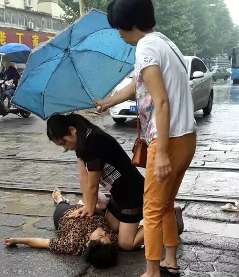 护士张鑫娜刚好办事经过,见状立刻双膝跪地,在生命的“黄金4分钟”内,及时给她做了心脏复苏和人工呼吸。