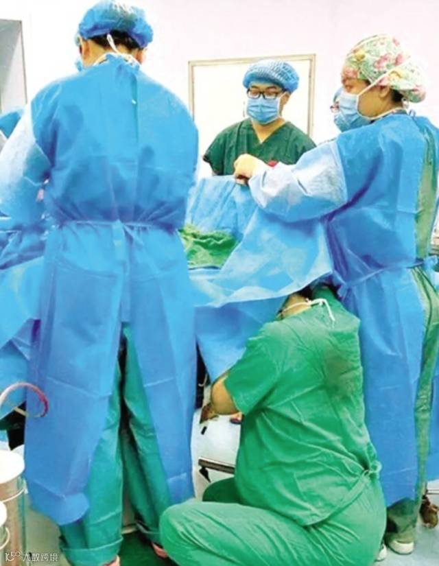 整场手术30分钟,她始终保持这个姿势,深深弯下腰,头和上半身都埋进蔚蓝色的手术床单里,直到胎儿顺利分娩。