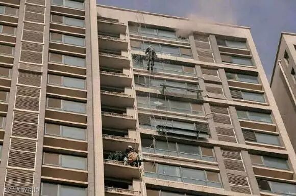 4名在周围工地干活的高楼清洁工看到浓烟后,第一时间赶到现场。电梯起火关闭,无法展开营救。这四个人背着80多斤重的绳子,接力爬到28楼。之后放绳砸窗,救下数人。