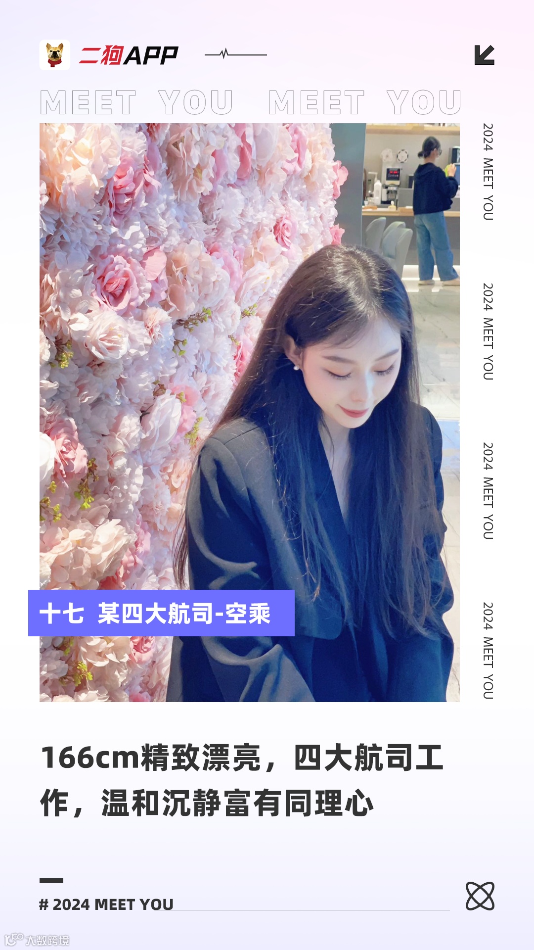 💕小语种出身曾到过国外学习,尝试过销售翻译等很多工作,后来成了民航摆渡人一枚,经济独立,唯一就是很难有周末和节假日,光鲜背后的苦楚希望对方能接受和理解。