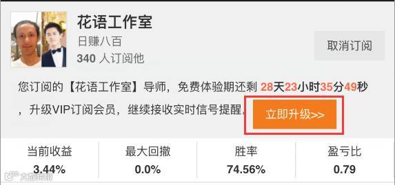 升级成为导师的付费VIP用户,将优先接收所订阅导师的实时、实盘、完整交易信号。