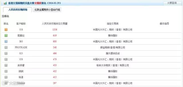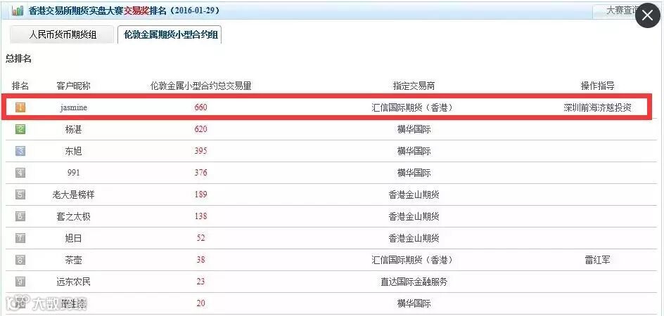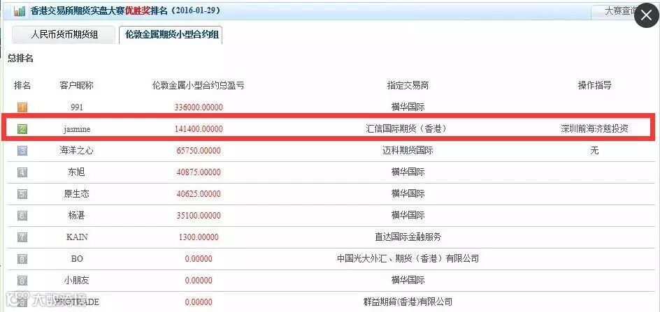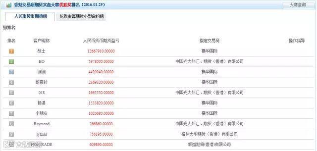 以下为“港交所人民币﹠伦敦金属期货实盘交易大赛排名榜”
