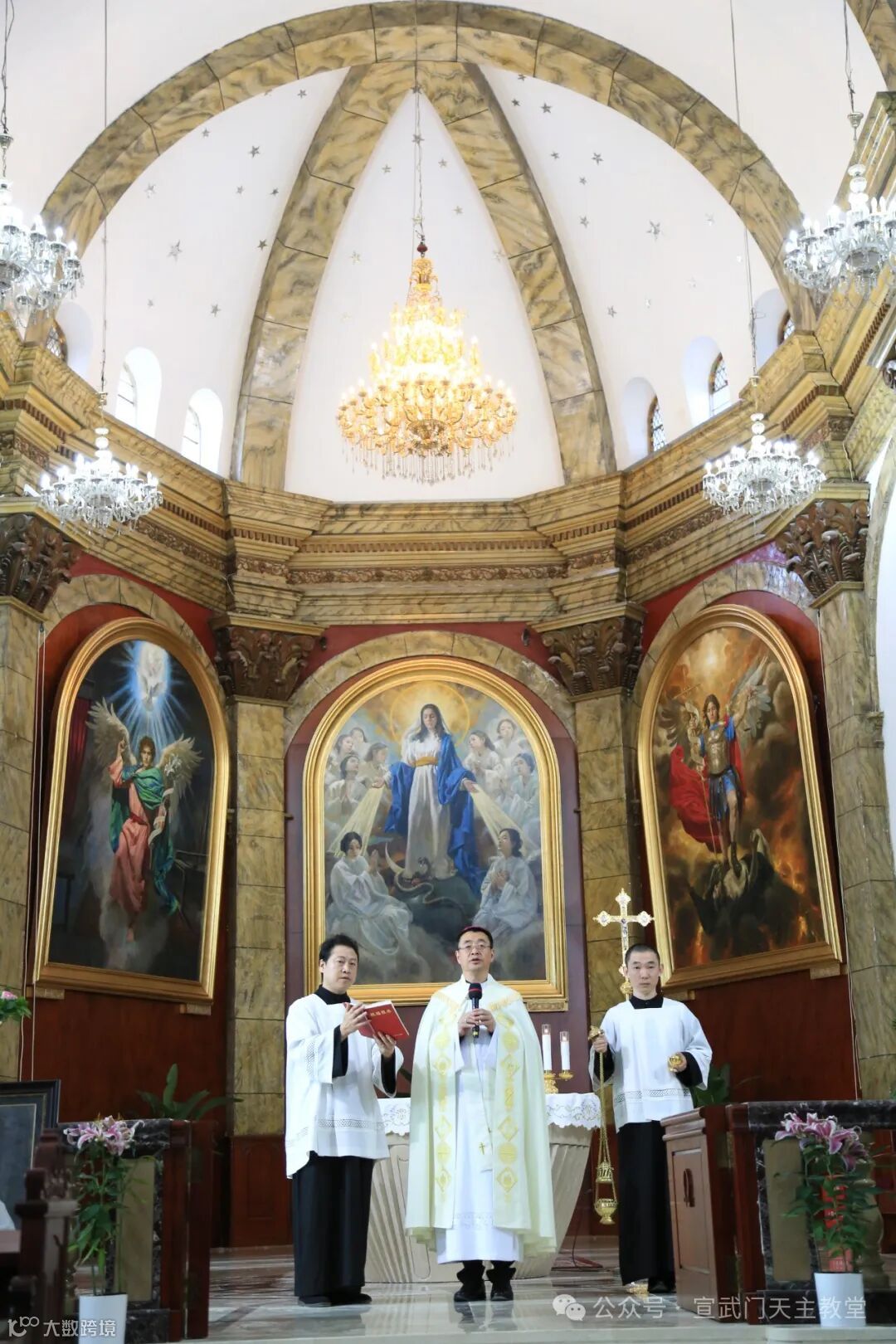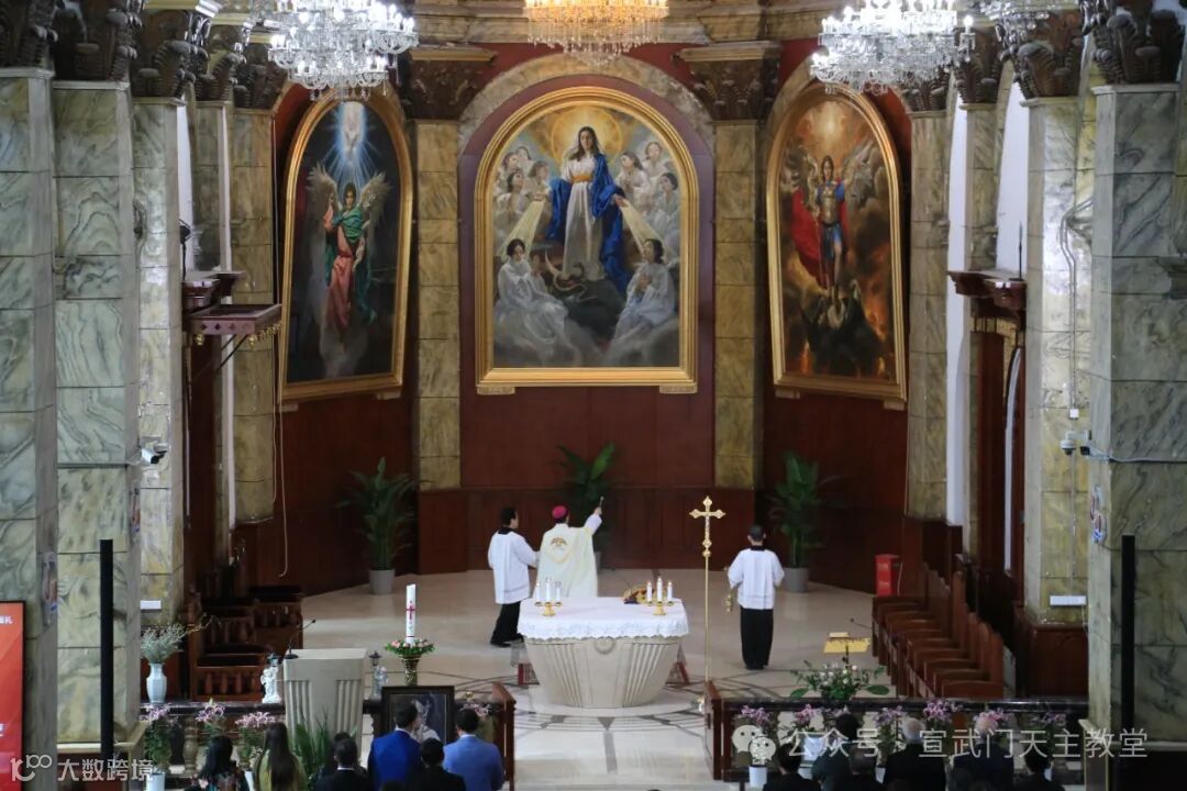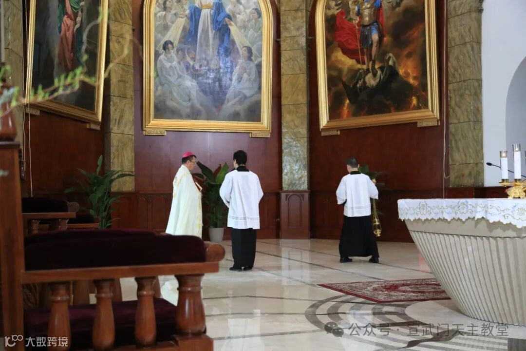 由北京教区甄雪斌助理主教主礼,为南堂祭台的三幅圣像完成了祝福礼。