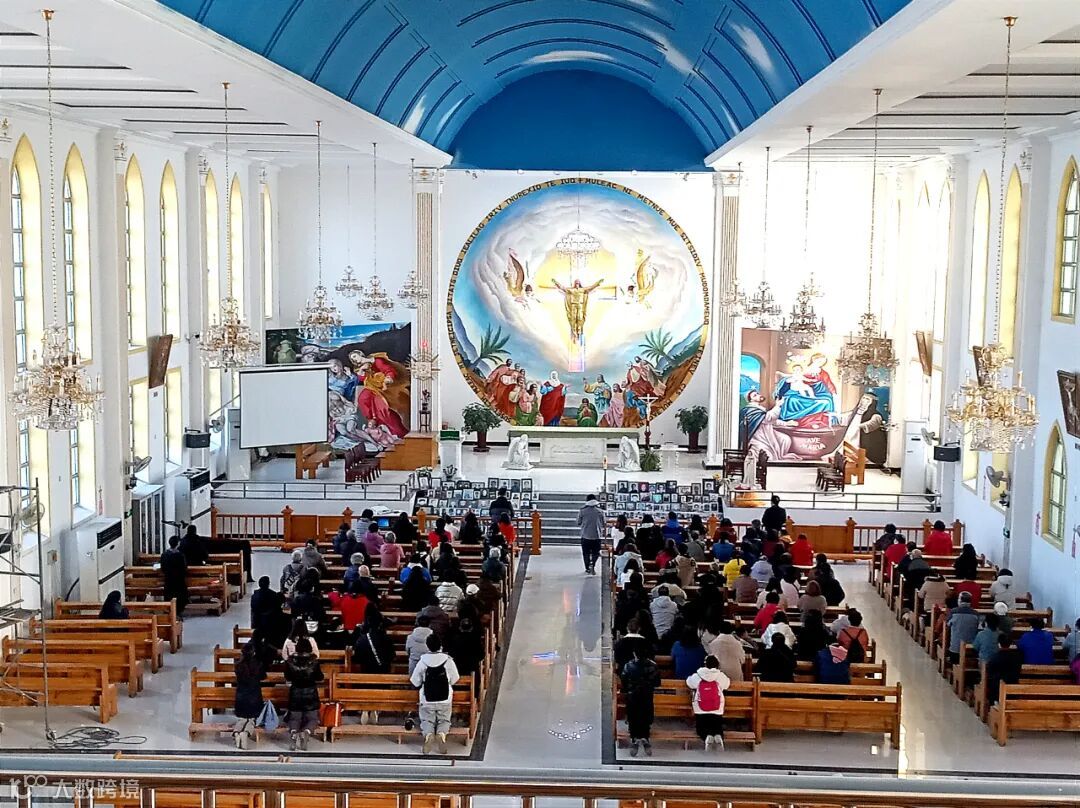 这座国内最高的天主堂矗立在蓝天下,高耸巍峨仿佛可以让我们的祈祷响彻云霄,站在这里,既感受到自己的渺小,更感动于我们与天主的交流似乎又近了一步……