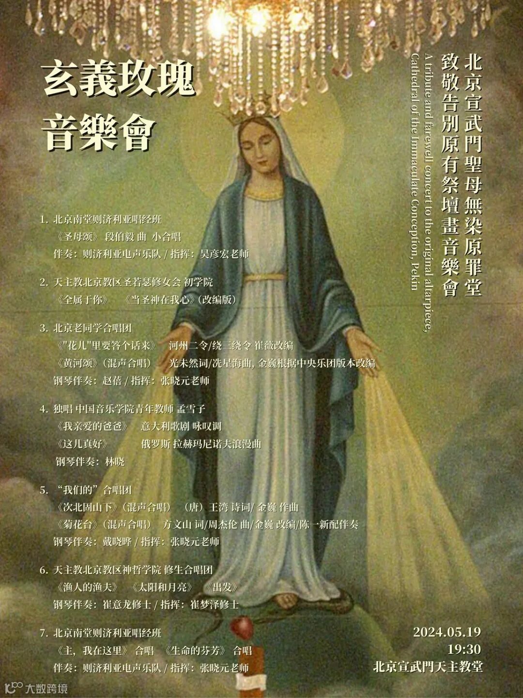 新的祭壇画即将于二期修缮中与大家见面,在五月这个特别的月份里,为了致敬告别原有祭壇画《圣母无染原罪像》,堂区安排了这次特殊的致敬告别系列音乐会。