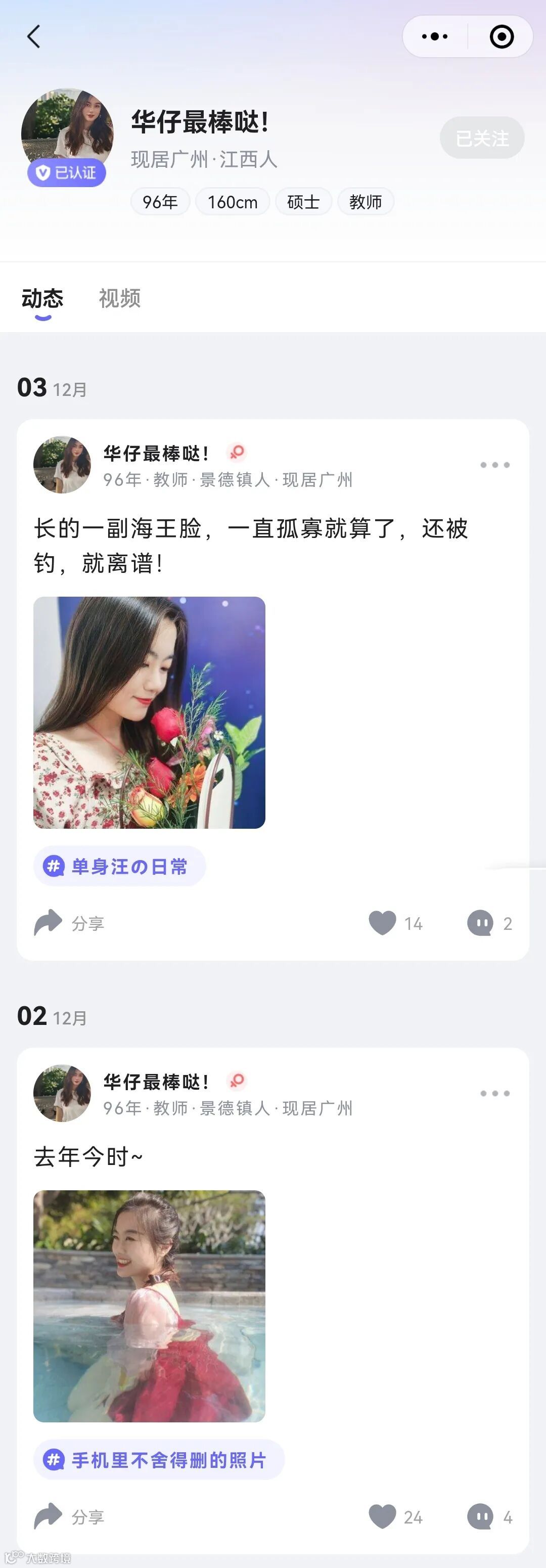 本文内容系发帖人自行编写,平台发帖前已按流程对发帖人的身份证、学位证和工作证信息做了核验,但无法做100%的准确性担保。同时,平台也无法核实用户自述的家庭背景、工作履历、人生经历等,更无法对用户的人品、性格等做任何担保,具体情况需要大家在交往中实际考察,请大家谨慎交友。