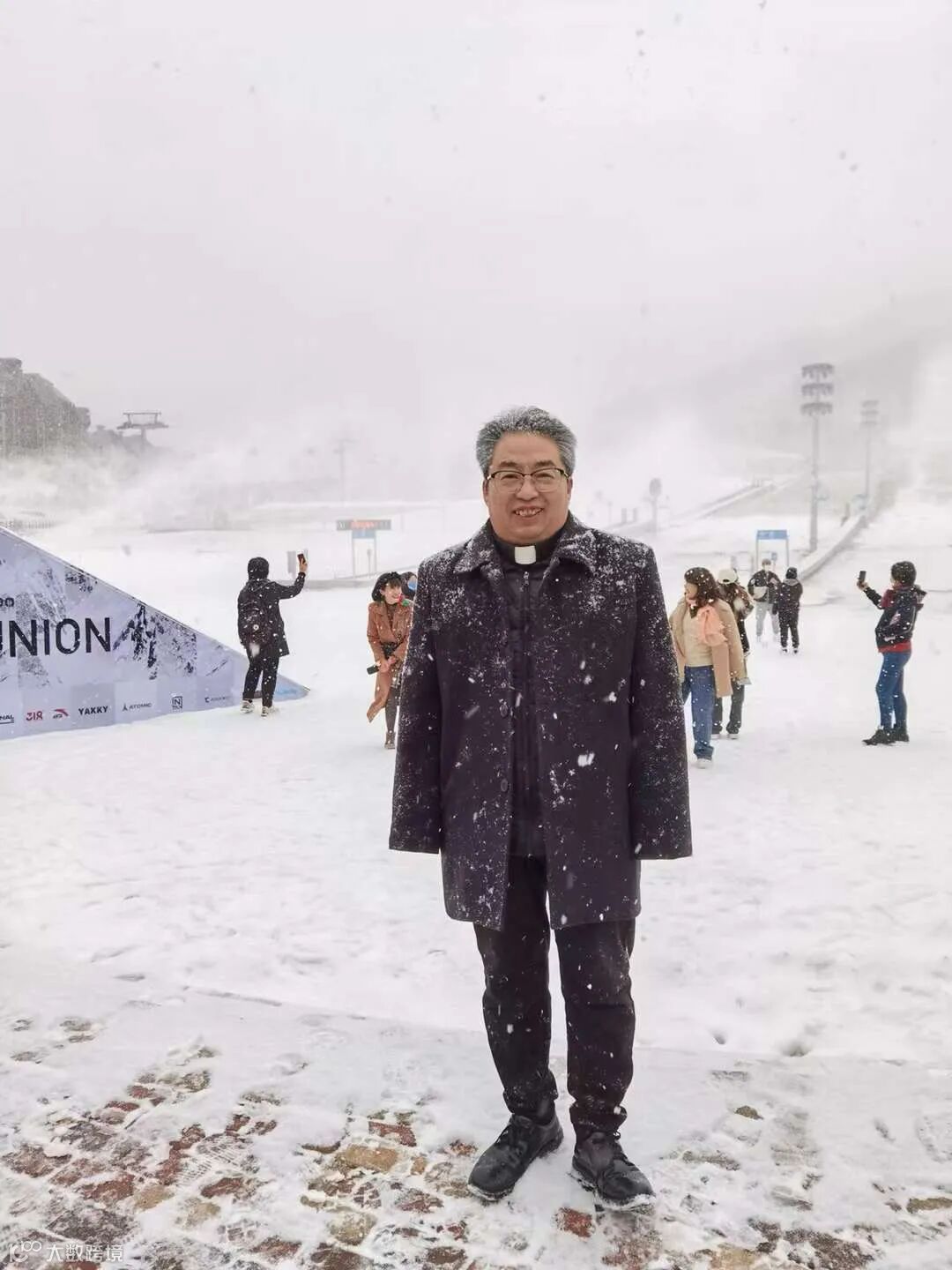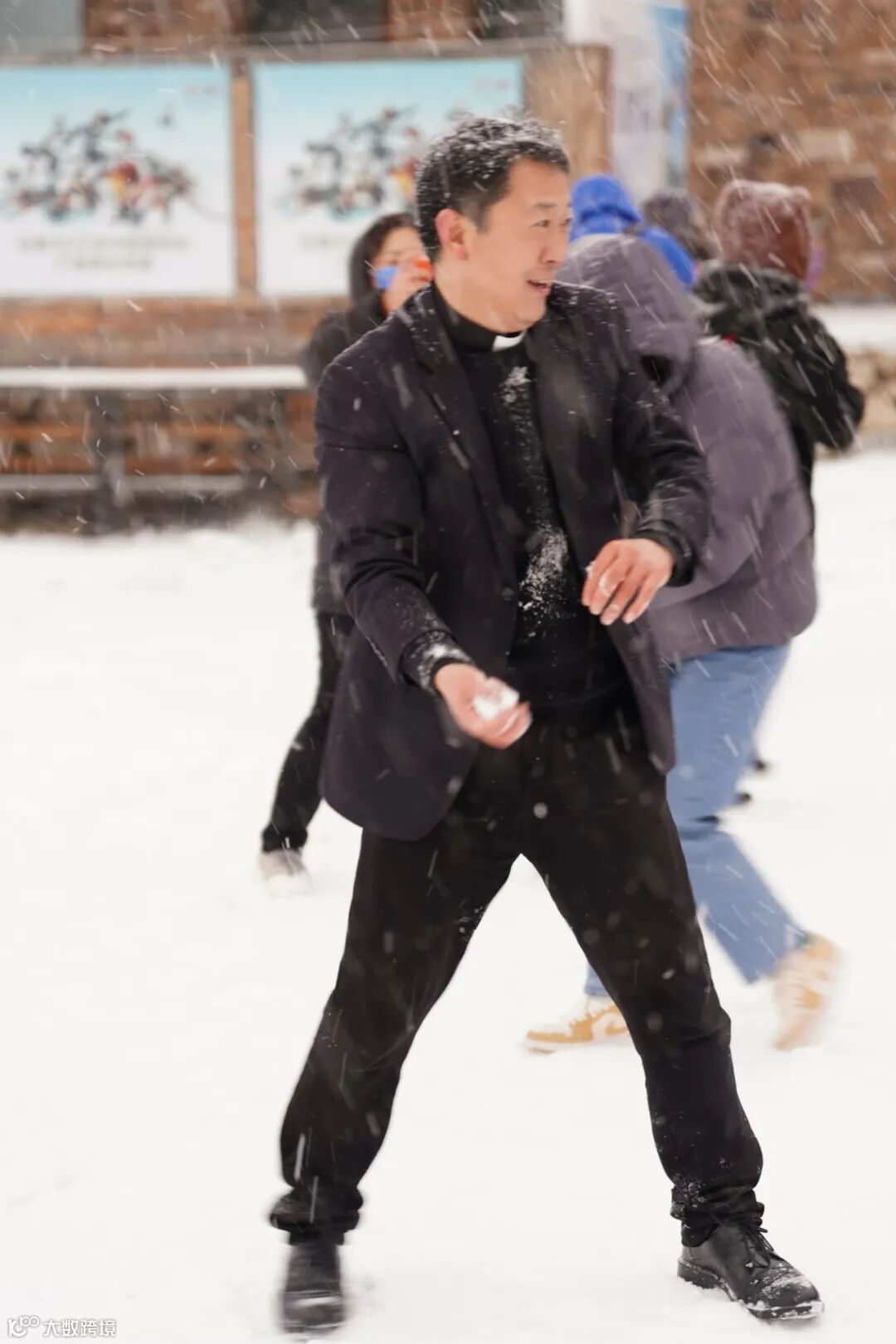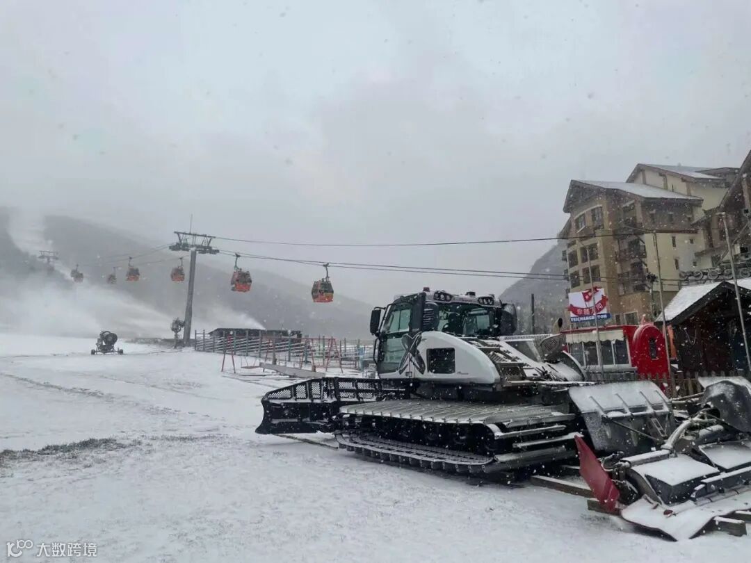 天空中的雪更大了,虽然雪场还没正式开放滑雪,但到处都是白茫茫的一片,大家开心地拍照,玩雪,还打起了雪仗。