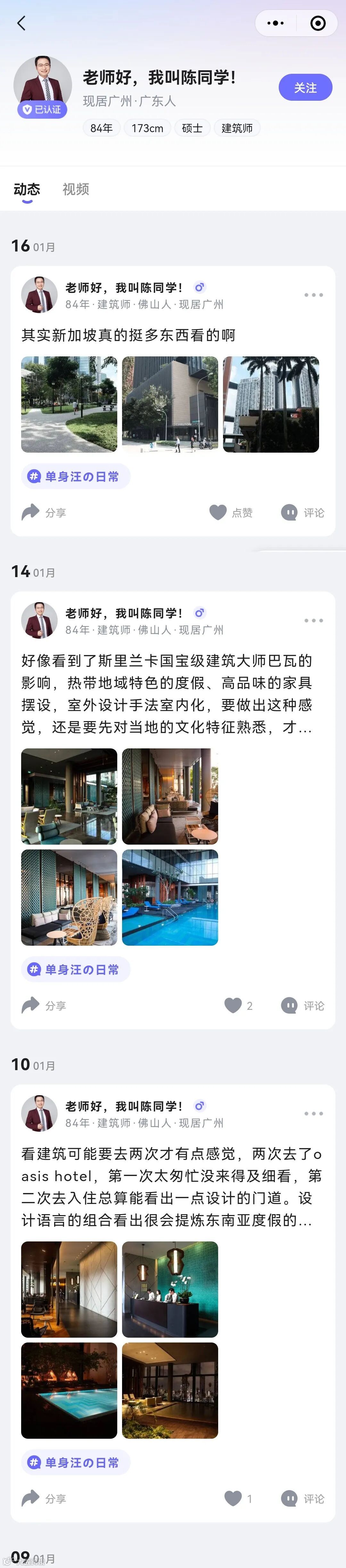 大家好!我叫陈同学,单身未婚,籍贯佛山,目前所在城市佛山市,主业:建筑师+摄影师,副业做电商创业,环球旅行和网红酒店达人,月入三到四万,收入上升空间非常大。家住中心城区一线江景,有宝马车一台。