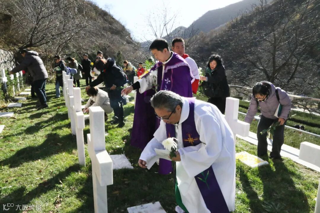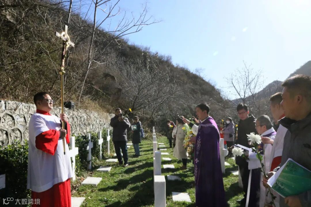 南堂张洪波、韩斌国、姜列群三位堂区神父和堂区赵秘书携同堂区一众教友,共同来到九公山北京天主教墓地,为安葬在此处的主教、神父、修女修士及亲友恩人,献上了我们的追思。