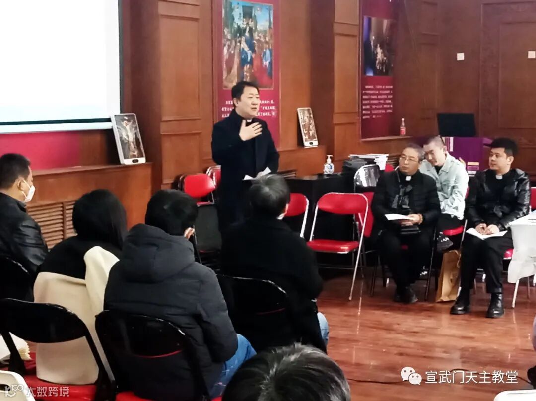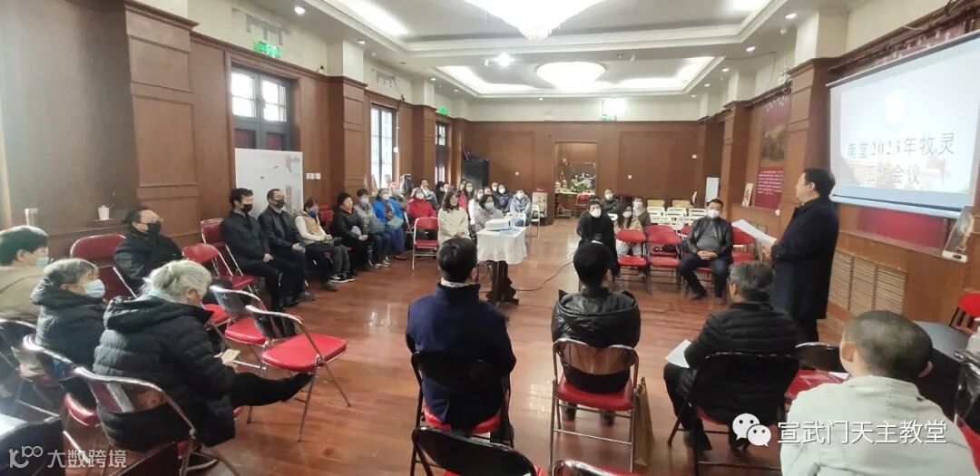 3月5日(四旬期第二主日),宣武门教堂在临时小圣堂召开了2023年牧灵工作会议。会议由堂区秘书赵海龙教友主持,堂区各团体负责人和部分特邀教友代表共40多人出席了会议。