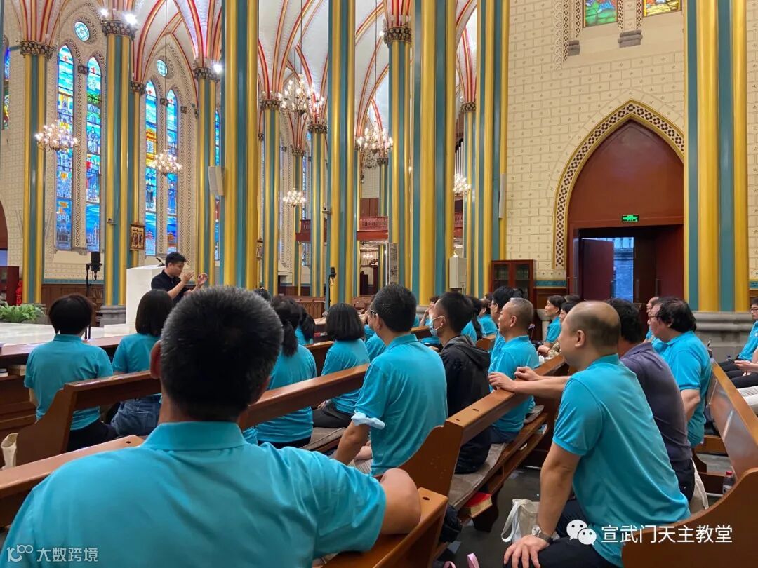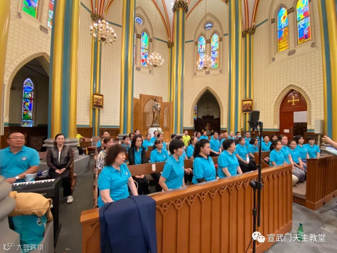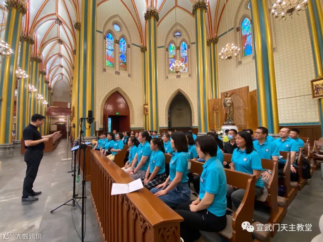 一周的最后一天,我们如期来到了北堂,在南堂修缮期间,每周六下午6点半的弥撒是给南堂的弥撒,所以我们也在北堂服务这台弥撒。因为只有这一台弥撒,南堂的几个唱经班于是都合并在一起排练服务。