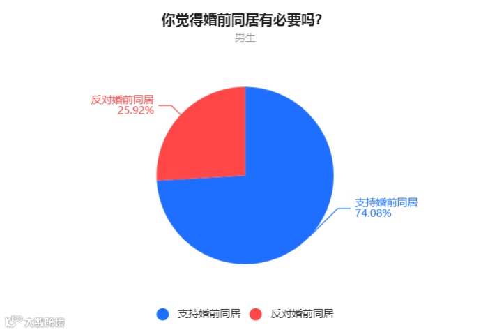 男生中,25.92%的人表示反对婚前同居,74.08%的人表示支持婚前同居。