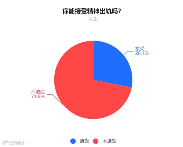 女生中,71.9%的人表示无法接受精神出轨,28.1%的人表示如果维护好家庭,他们可以接受。